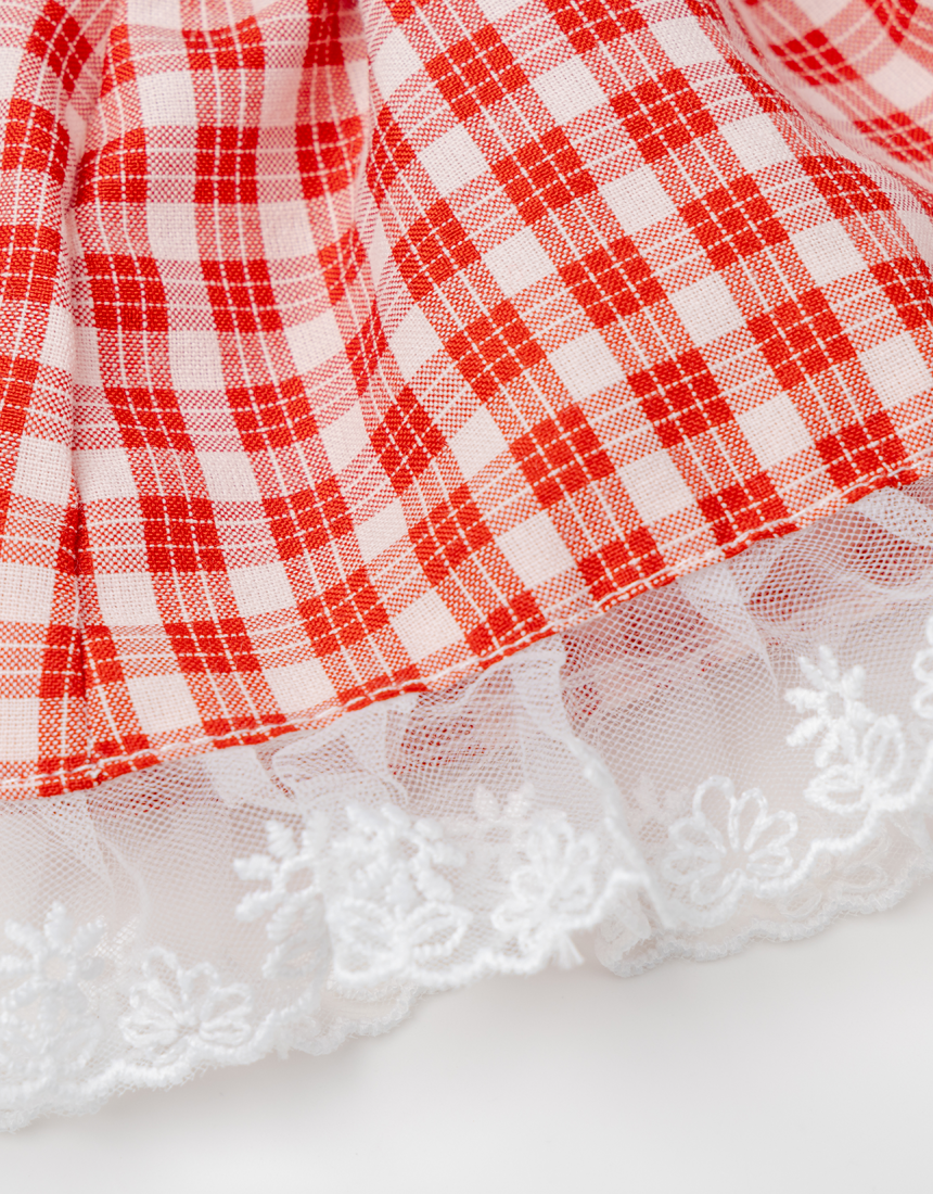 토몽이 S(30cm) - 레드체크 원피스 S사이즈 착용