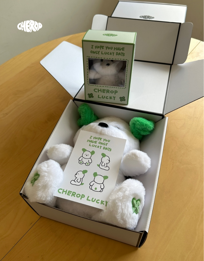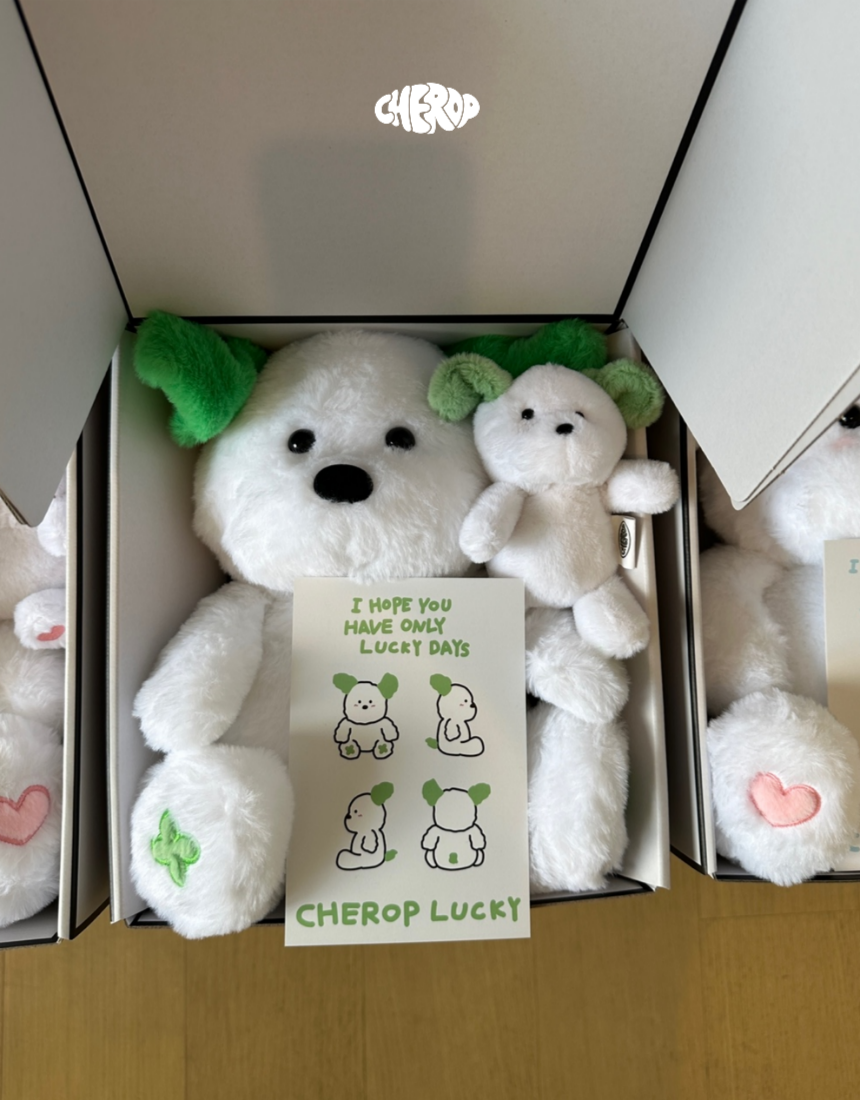 Detailed with a four-leaf clover embroidery on the paw for an extra touch of luck.