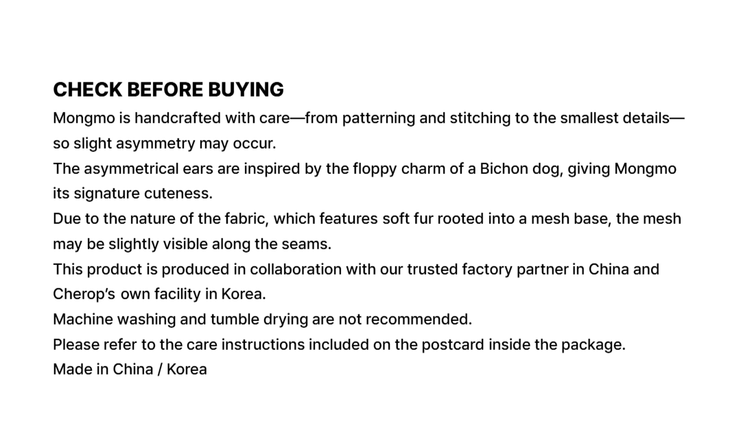 For returns or inquiries, please contact us at [hyomin@cherop.com].